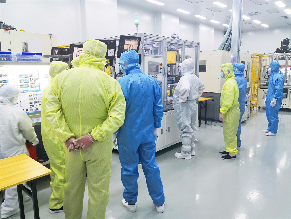 圖二 客戶視察IGBT功能承載模塊全自動(dòng)化生產(chǎn)線